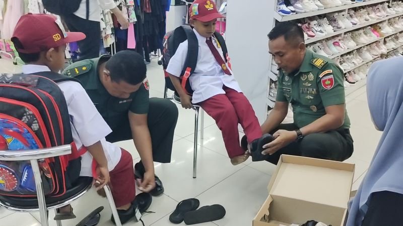 Saat membeli kebutuhan sekolah di salah satu toko, para anggota Kodim 1409/Gowa tersebut dengan sabar membantu memasangkan sepatu baru di kaki mungil Aidil, sementara Syamsul tertawa kecil ketika mencoba seragamnya. Bagi mereka, ini bukan sekadar tugas formal, melainkan bentuk nyata kepedulian.